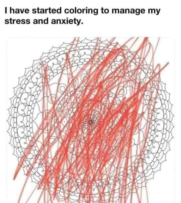 Props to the people who can actually keep their hands steady enough to color. I call bullshit on most of those anxiety coloring books. My anxiety looks like broken melted crayons soaked in sweat anger and tears. I don’t have a first thought of my anxiety bad so I’m just going to color.I just don’t think it is relaxing or feasible in a situation where your anxiety is peaking. I start to spazz out rather quickly so maybe it is just me with that problem. I tried one time to work on a coloring book and all I wanted to do was rip the pages out. This is kind of like those fidget spinners even though they were made with the best of intentions people have kind of gone overboard with them. They are for people who want to say “anxiety” or “ADD/ADHD” but they just wanted to be part of a fad.