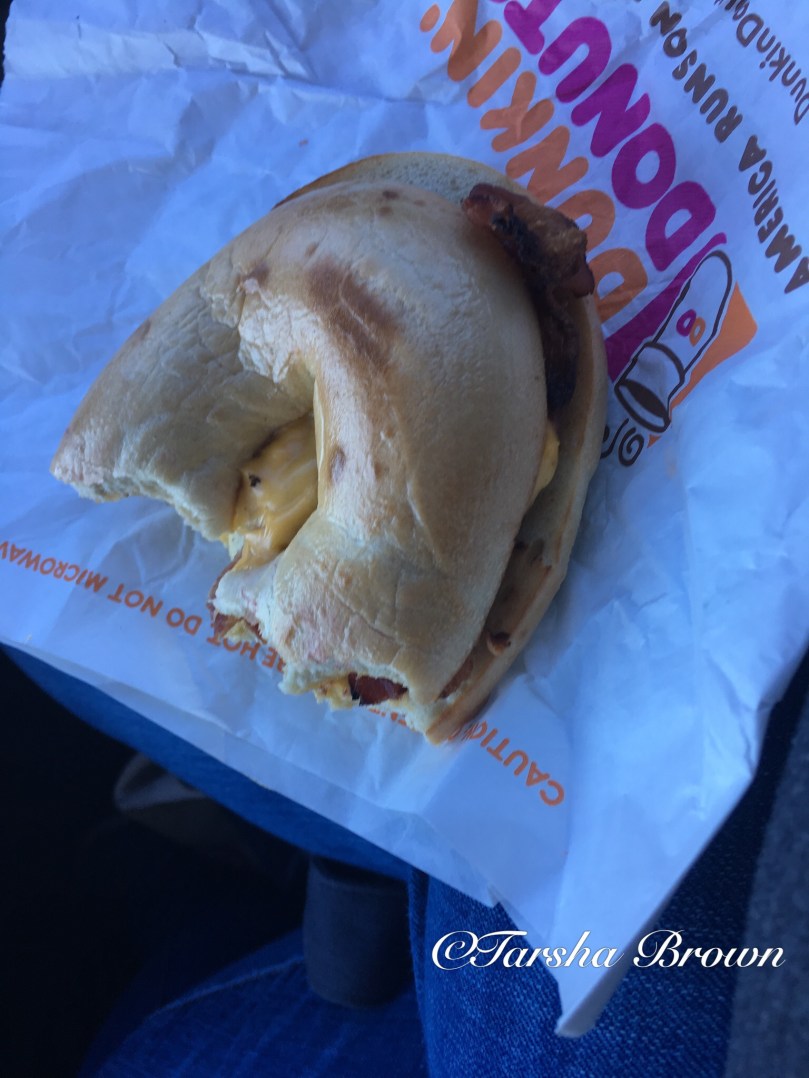 This again is from the walk. We stopped at Dunkin Donuts and I quickly learned they don’t have a great breakfast options besides donuts. I ordered a bacon egg and cheese bagel without the egg. I can’t eat eggs like that it tears my stomach up every time. The bagel was a little crispy and there were burnt pieces on my hash browns but it was enough to tide me over until we went and ate lunch/dinner. I wouldn’t recommend breakfast there ever.