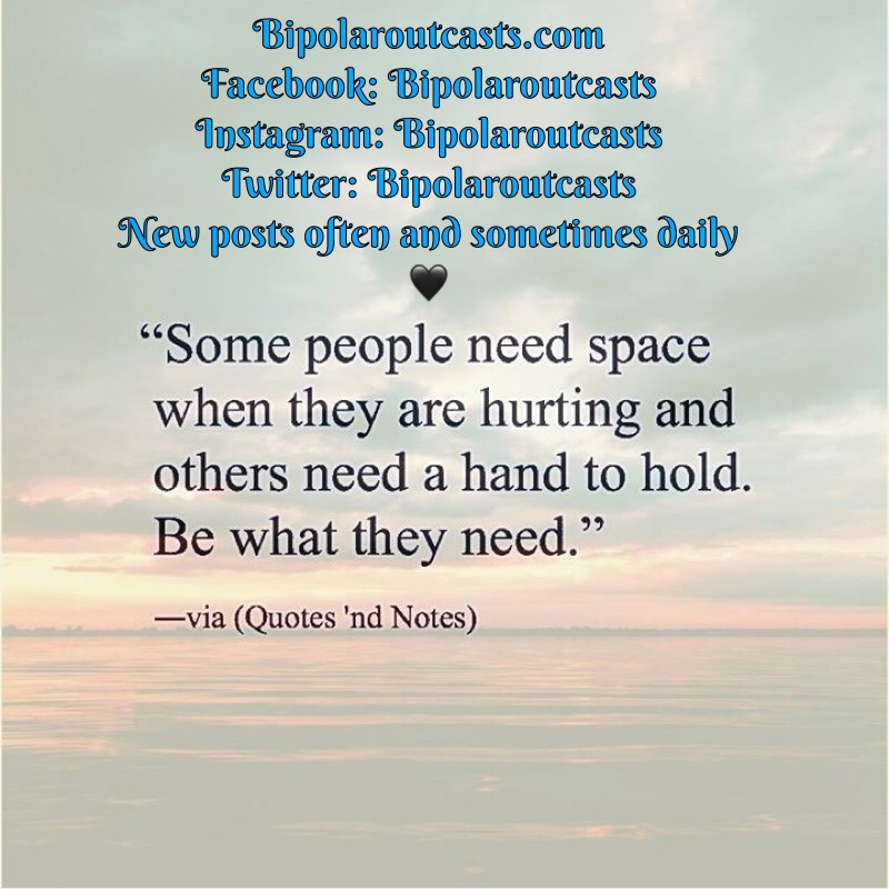 Some people need a little space when they are hurting and other need a hand to hold . Be what they need.