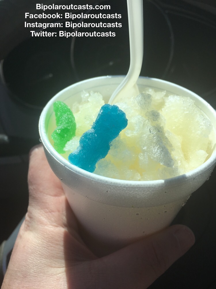 Today my daughter went on a day trip with 4H and it is my day off. We went and got shaved ice after and had a great time. My plan is to update my blog so Wednesday and Friday I can focus on the book. That is my hope anyway. I’ve also noticed that when I pull out my journal in places that aren’t home people look at me funny. The man is back again which is always awesome. He is creeping in there little by little fucking with my head. The worst part is when I’m sleeping so if it stays contained to sleep we can figure it out. I feel like right now I am strong enough to hold it out but Jolene isn’t having any of it. We will see which mood triumphs in victory hopefully it is the one that is stable.